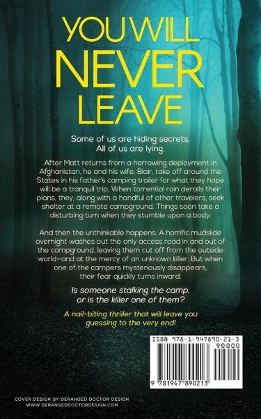 Some of us are hiding secrets. All of us are lying.After Matt returns from a harrowing deployment in Afghanistan, he and his wife, Blair, take off around the States in his father's camping trailer for what they hope will be a tranquil trip. When torrential rain derails their plans, they, along with a handful of other travelers, seek shelter at a remote campground. Things soon take a disturbing turn when they stumble upon a body. And then the unthinkable happens. A horrific mudslide overnight washes out the only access road in and out of the campground, leaving them cut off from the outside world-and at the mercy of an unknown killer. But when one of the campers mysteriously disappears, their fear quickly turns inward. Is someone stalking the camp, or is the killer one of them?- A nail-biting thriller that will leave you guessing to the very end! -