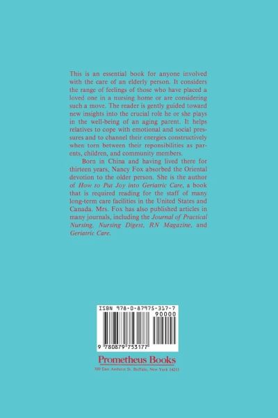 Anyone faced with the prospect of having to place a parent in a nursing home knows it is one of life's more difficult decisions. One often feels guilt, doubt, helplessness, and sometimes even resentment. These emotions can overshadow the conviction that "this is the right thing for Mother/Father." Now there is a book that provides a solid basis for public evaluation of a nursing home. You, Your Parent, and the Nursing Home examines what makes a facility an emotionally nourishing environment. The author, who is eminently qualified to provide such guidance, explains the "Six Common Practices" that may not be contributing to the overall benefit of nursing home life, and which, until now, have been kept in the realms of "professional perogatives." Nancy Fox takes the reader on a tour of the local nursing facility, affording a peek backstage both during and after visiting hours, by the day and in the dead of night, into every nook and cranny. She provides helpful instructions on what to observe, and how to evaluate the care given. The family, she suggests, can become a powerful influence in bettering that care. Nancy Fox has practiced as a direct-care nurse or licensed vocational nurse in nine facilities in five states, and in a Vetran's Hospital. She has served as in-service director, staff nurse, and floor supervisor.