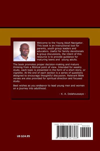 Young Adult Navigator is an instructional tool for parents, youth group leaders and educators. Useful for family devotionals and group discussions, this resource provides guidance for maturing teens and young adults in the 16 to 25 age group. Containing more than 250 pages, Young Adult Navigator delivers a year's worth of discussions (52+ weeks) on a variety of topics. Intended for weekly study, each topic is presented in the form of a short story, or vignette. At the end of each vignette is a series of questions designed to promote thoughtful discussion. Relevant Bible verses are also provided for spiritual direction and further study.