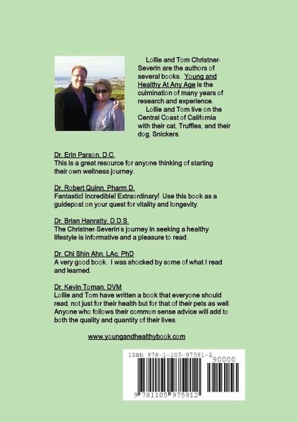 With the guidance of an outstanding team of medical professionals, Lollie and Tom Christner-Severin have learned the secrets of staying young and healthy and now share what they have learned so you can take advantage of these remarkable anti-aging techniques. Lollie and Tom have done the research and have written this book in layman's terms so you can put their suggestions to use in your life. You can be healthier and have more vitality. You can look and feel younger. You can have more energy. You can save money on medical and pharmaceutical costs. You can live your life to the fullest.
