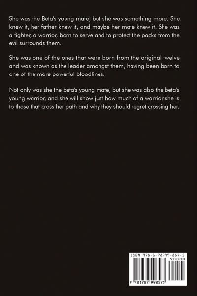 She was the Beta's young mate, but she was something more. She knew it, her father knew it, and maybe her mate knew it. She was a fighter, a warrior, born to serve and to protect the packs from the evil surrounds them. She was one of the ones that were born from the original twelve and was known as the leader amongst them, having been born to one of the more powerful bloodlines. Not only was she the beta's young mate, but she was also the beta's young warrior, and she will show just how much of a warrior she is to those that cross her path and why they should regret crossing her.