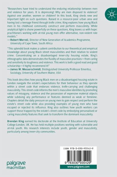 This book describes how young Black men on a disadvantaged housing estate in London navigate the estate's expectations for their behaviour as they operate within a street code that endorses violence, knife-carrying and challenging masculinity. This street code informs the men's masculine identities by promoting values of misogyny, violence and the possession of expensive material objects while subduing any performance or features deemed as weak or feminine. Chapters detail the daily pressure on young men to gain respect and perform the estate's street code while also providing examples of young men who have escaped or rejected its influence. King also outlines how youth workers can support those trapped by the estate's street code by embodying personalised or caring masculinity features that seek to transform the dominant masculinity.
