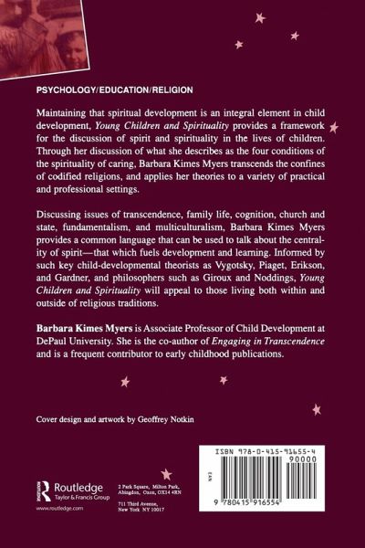 Maintaining that spiritual development is an integral element in child development, Barbara Kimes Myers provides a framework for the discussion of spirit and spirituality in the lives of children. Through her discussion of the four core conditions of a spirituality of caring, she crosses the borders of various faiths and applies her theories to a variety of practical and professional settings. Through Myers' discussion of the four core conditions of a spirituality of caring, she crosses the borders of various faiths and applies her theories to a variety of practical and professional settings, providing a common language that can be used to talk about the centrality of spirit--that which fuels development and learning. She discusses transcendence, family life, cognition, church and state, fundamentalism and multiculturalism. Her framework emerges from her understanding of the thinking of key child developmental theorists--Vygtosky, Piaget, Erikson, Gardner, Giroux and Noddings.