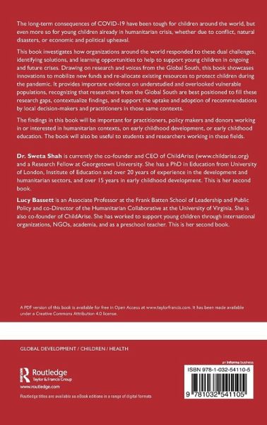 This book investigates how organizations around the world responded to the consequences of COVID-19 on young children already living in humanitarian crisis, by identifying solutions, and learning opportunities to support young children in ongoing and future crises. This book will appeal to students and practitioners alike.