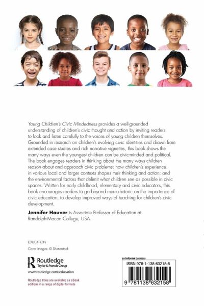 Young Children's Civic Mindedness provides a well-grounded understanding of children's civic thought and action by inviting readers to look and listen carefully to the voices of young children themselves. Grounded in research on children's evolving civic identities and drawn from extended case studies and rich narrative vignettes, this book shows the many ways even the youngest children can be civic-minded and political. The book engages readers in thinking about the many ways children reason about and approach civic problems; how children's experience in various local and larger contexts shapes their thinking and action; and the environmental factors that delimit what children see as possible in civic spaces. Written for early childhood, elementary and civic educators, this book encourages readers to go beyond mere rhetoric on the importance of civic education, to develop improved ways of teaching for children's civic development.