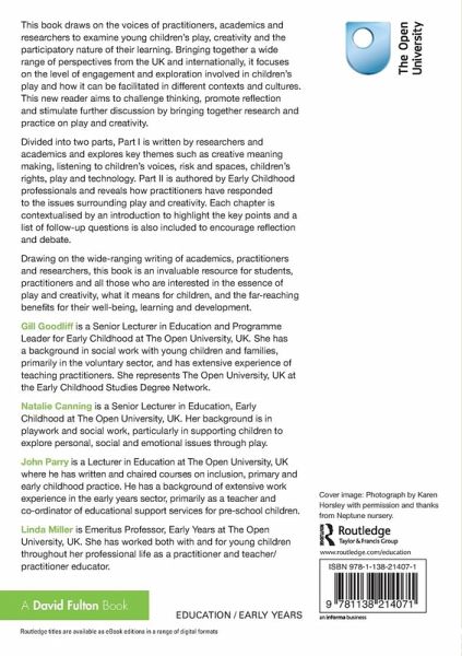 Gill Goodliff is a Senior Lecturer in Education and Programme Leader for Early Years at The Open University. She has a background in social work with young children and families, primarily in the voluntary sector, and has extensive experience of teaching practitioners. She represents The Open University at the Early Childhood Studies Degree Network. Natalie Canning is a Senior Lecturer in Education, Early Years at The Open University. Her background is in playwork and social work, particularly in supporting children to explore personal, social and emotional issues through play. John Parry is a Lecturer in Education at The Open University, where he has written and chaired courses on inclusion, primary and early years practice. He has a background of extensive work experience in the early years sector, primarily as a teacher and co-ordinator of educational support services for pre-school children. Linda Miller is Emeritus Professor, Early Years at The Open University. She has worked both with and for young children throughout her professional life as a practitioner and teacher/practitioner educator.