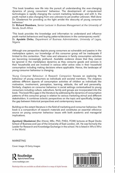 Although one perspective depicts young consumers as vulnerable and passive in the marketplace system, our knowledge of this consumer group will be inadequate if limited to this contention. Their roles and relevance in family consumption activities are becoming increasingly profound. Available evidence shows that they cannot be ignored in the marketplace dynamics as they consume goods and services in their households and are involved in various other active roles in their household consumption including making decisions where applicable. Hence, the landscape of young consumer behaviour is changing. Young Consumer Behaviour: A Research Companion focusses on exploring the behaviour of young consumers as individuals and societal members. The chapters address different aspects of consumption activities of children as individuals like motivation, involvement, perception, learning, attitude, the self, and personality. Similarly, chapters on consumer behaviour in social settings contextualised to young consumers including culture, sub-culture, family, and groups are incorporated into the book. This book fills a gap in the literature by addressing the dynamics of consumption patterns of this consumer group, in relation to various marketing stimuli and different stakeholders. It combines eclectic perspectives on the topic and specifically, bridges the gap between historical perspectives and contemporary issues. Building on the extant literature in the field of marketing and consumer behaviour, this book is a compendium of research materials and constitutes an essential reference source on young consumer behaviour issues with both academic and managerial implications.