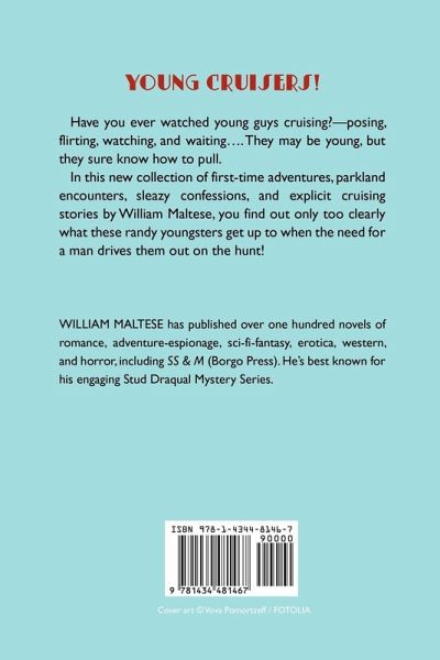 YOUNG CRUISERS! Have you ever watched young guys cruising -- posing, flirting, watching, and waiting.... They may be young, but they sure know how to pull. In this new collection of first-time adventures, parkland encounters, sleazy confessions, and explicit cruising stories by William Maltese, you find out only too clearly what these randy youngsters get up to when the need for a man drives them out on the hunt!