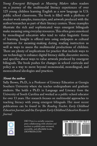 Young Emergent Bilinguals as Meaning Makers takes readers on a journey of the multimodal literacy experiences of over 125 young children learning English as a new language in U.S. public school classrooms. The book is filled with a plethora of student work samples, transcripts, and artwork produced with the author/researcher as part of their literacy centers. These examples illustrate the rich and sophisticated ways emergent bilinguals make meaning using everyday resources. This often goes unnoticed by monolingual educators who tend to value linguistic forms of learning. Insight is offered into using endpapers as cultural invitations for meaning-making during reading instruction as well as ways to assess the multimodal productions of children. There are plenty of implications for practice that include ways to use technology to enhance digital literacy skills, discursive moves, and specifics about ways to value artwork produced by emergent bilinguals. The book pushes for changes in school curricula and policy as a way to move beyond monomodal, monolingual, and monocultural ideologies and practices.