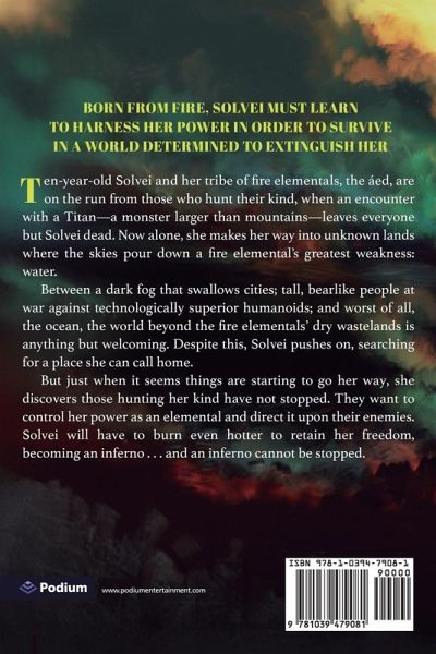 Born from fire, Solvei must learn to harness her power in order to survive in a world determined to extinguish her, in this fantasy adventure. Ten-year-old Solvei and her tribe of fire elementals, the áed, are on the run from those who hunt their kind, when an encounter with a Titan-a monster larger than mountains-leaves everyone but Solvei dead. Now alone, she makes her way into unknown lands where the skies pour down a fire elemental's greatest weakness: water. Between a dark fog that swallows cities; tall, bearlike people at war against technologically superior humanoids; and worst of all, the ocean, the world beyond the fire elementals' dry wastelands is anything but welcoming. Despite this, Solvei pushes on, searching for a place she can call home. But just when it seems things are starting to go her way, she discovers those hunting her kind have not stopped. They want to control her power as an elemental and direct it upon their enemies. Solvei will have to burn even hotter to retain her freedom, becoming an inferno . . . and an inferno cannot be stopped. The first volume of the hit progression-fantasy series-with more than a million views on Royal Road-now available in print, ebook, and audiobook!