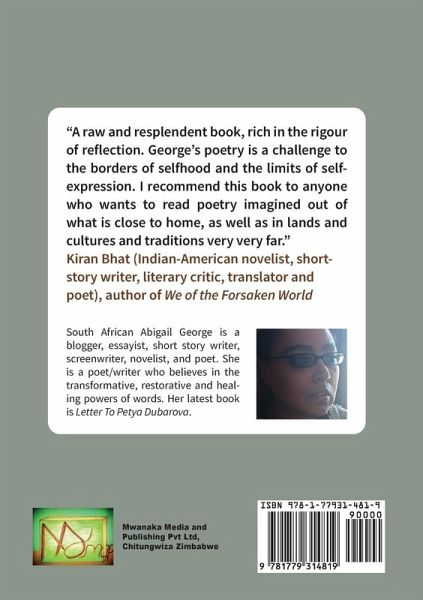 "A raw and resplendent book, rich in the rigour of reflection. George's poetry is a challenge to the borders of selfhood and the limits of self- expression. I recommend this book to anyone who wants to read poetry imagined out of what is close to home, as well as in lands and cultures and traditions very very far." Kiran Bhat (Indian-American novelist, short- story writer, literary critic, translator and poet), author of We of the Forsaken World. South African Abigail George is a blogger, essayist, short story writer, screenwriter, novelist, and poet. She is a poet/writer who believes in the transformative, restorative and heal- ing powers of words. Her latest book is Letter To Petya Dubarova.