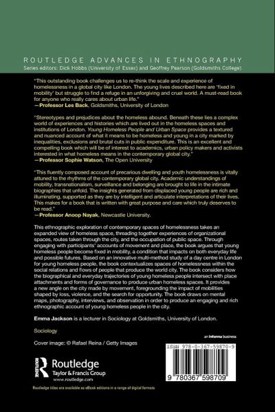 This ethnographic exploration of contemporary spaces of homelessness takes an expanded view of homeless space, threading together experiences of organizational spaces, routes taken through the city and the occupation of public space. Through engaging with participants' accounts of movement and place, the book argues that young homeless