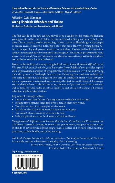 "This is a fascinating, pioneering book. Based on results from the Pittsburgh Youth Study, it identifies childhood risk factors that predict involvement in homicide as offenders and victims, and it offers provocative simulations of the potential impacts of possible prevention strategies. The authors' sophisticated analyses demonstrate convincingly the considerable value of prospective longitudinal data for enhancing our understanding of the etiology and control of lethal violence." -- Steven F. Messner, Ph.D. Distinguished Teacher Professor, Department of Sociology, University at Albany, SUNY President, American Society of Criminology