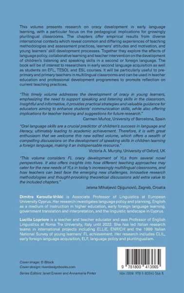 This book presents international research on oracy development in early language learning, focusing on the pedagogical implications for plurilingual classrooms. It explores the effects of language policy, collaborative learning and teacher intervention on speaking and listening skills in early foreign language and second language classrooms.