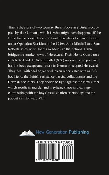 This is the story of two teenage British boys in a Britain occupied by the Germans, which is what might have happened if the Nazis had successfully carried out their plans to invade Britain under Operation Sea Lion in the 1940s. Alan Mitchell and Sam Roberts study at St. John's Academy in the fictional Cambridgeshire market town of Hereward. Their Home Guard unit is defeated and the Schutzstaffel (S.S.) massacres the prisoners but the boys escape and return to German occupied Hereward. They deal with challenges such as an older sister with an S.S. boyfriend, the British resistance, fascist collaborators and the German occupiers. They decide to fight against the New Order which results in murder and mayhem, chaos and carnage, culminating with the boys' assassination attempt against the puppet king Edward VIII.