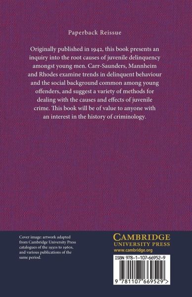 Originally published in 1942, this book presents an inquiry into the root causes of juvenile delinquency amongst young men. Carr-Saunders, Mannheim and Rhodes examine trends in delinquent behaviour and the social background common among young offenders, and suggest a variety of methods for dealing with the causes and effects of juvenile crime. This book will be of value to anyone with an interest in the history of criminology.