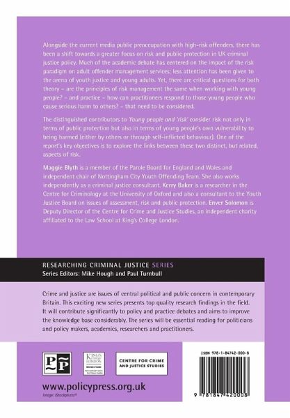 Alongside the current media preoccupation with high risk offenders, there has been a shift towards a greater focus on risk and public protection in UK criminal justice policy. This report draws together a distinguished panel to consider both the theory and application of the risk concept in work with young people and young adults that offend.