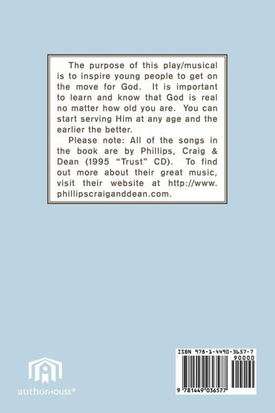 The purpose of this play/musical is to inspire young people to get on the move for God. It is important to learn and know that God is real no matter how old you are. You can start serving Him at any age and the earlier the better. Please note: All of the songs in the book are by Phillips, Craig & Dean. To find out more about their great music, visit their website at http://www.phillipscraiganddean.com.