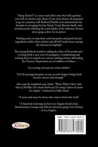 "Young Rasheed" is a must read urban story that will captivate you with its tension and release of raw street drama. Be prepared to go on a journey with Rasheed Kimble as he demonstrates his bravado in revenging his best friend, Curtis Brown's death, and simultaneously climbing the merit ladder of the infamous Avenues street gang as they rise to power. Nothing seems to stop them until deception and greed become ingredients within their echelon and all hell breaks loose causing the Avenues to implode! But young Rasheed resurfaces taking the ethos of his predecessor to bring forth a new crew of youngsters. Conditioning and training them to embark on a money making scheme defrauding the Treasury Department out of millions of dollars. "An exciting real and raw urban thriller!" "Feel the protagonist grow on you as each chapter brings forth tension, sorrow and triumph." Also read the insightful essay titled: "When? Where? How? And Most of All Why? Our Youth Embraced The Gang Culture In South Los Angeles." Authored by Haki Askari "A must read essay for those who want to know the truth" "A historical road map on how Los Angeles Social clubs, Revolutionary Groups and African American gangs were formed in Los Angeles.