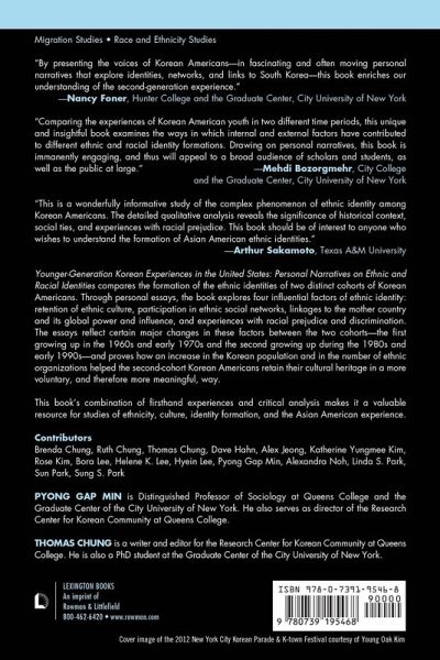 Younger-Generation Korean Experiences in the United States: Personal Narratives on Ethnic and Racial Identities compares the formation of the ethnic identities of two distinct cohorts of Korean Americans. Through personal essays, the book explores four influential factors of ethnic identity: retention of ethnic culture; participation in ethnic social networks; links to the mother country and its global power and influence; and experiences with racial prejudice and discrimination. The essays reflect certain major changes between the two cohorts-the first growing up in the 1960s and early 1970s and the second growing up during the 1980s and early 1990s- and proves how an increase in the Korean population and in the number of ethnic organizations helped the second-cohort Korean Americans retain their cultural heritage in a more voluntary, and therefore meaningful, way. This book's combination of first-hand experiences and critical analysis makes it a valuable resource for studies of ethnicity, culture, identity formation, and the Asian-American experience.