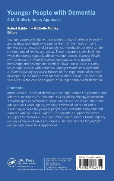 This book is an education resource for practitioners who in organize services for people with dementia, including psychiatrists, neurologists, physicians, nurses, occupational therapists, social workers and even speech and language therapists. Younger dementia patients do not readily fit into any of the conventional mental health services categories, either for adults of working age or for older adults. Currently, old-age psychiatrists generally lead services for this group. Younger dementia patients require specific skills to address their needs, and those skills are best delivered by a multi-professional team working in a multi-disciplinary way. Younger People with Dementia provides all the information to develop this type of dedicated service and will also be relevant for those who commission mental health services.