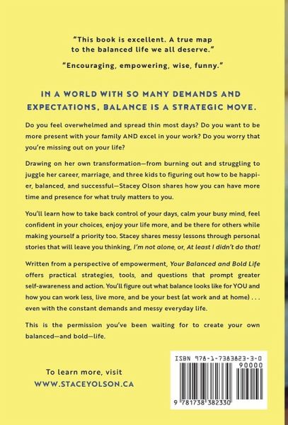 Stacey Olson works with leaders and teams who want to create more balance, stress less, and perform even better. She is a Leadership and Positive Psychology Certified Coach, has more than fifteen years of corporate and business experience, and has gone through her own transformational change from being close to burnout to figuring out how to be more balanced, feel happier, and accomplish even more. She helps others through coaching, workshops, and speaking-and now this book! Stacey lives in Canada with her husband and kids, loves spending time at the lake, and is on a mission to empower more balance and presence in our everyday lives and leadership.