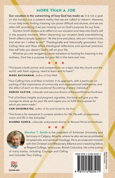 Our vocation is the outworking of how God has made us. It is not a goal on the horizon but a present reality that we are called to discern and explore. However, in the midst of our daily lives, finding meaning can prove both difficult and elusive, and we are often left wondering if we are missing out on God's purpose for our lives. Gordon Smith invites us to reflect on our vocation and step into God's call in the present moment. When discerning our vocation feels overwhelming, Smith offers a simple question as a way forward: At this time and place, who am I meant to be, and what am I called to do? Theologically and historically grounded, Your Calling Here and Now offers theological reflections and spiritual practices that will help you discern God's call on your life. Whether you are navigating career transitions or looking for meaning in the ordinary, God has a purpose for your life for the here and now.