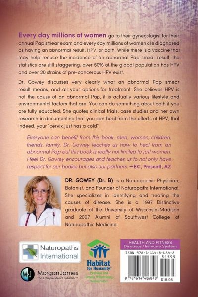 Contents Acknowledgements Foreword Background: What is Naturopathic Medicine? Introduction 1. What is an Abnormal Pap? 2. Environmental Toxins. 3. Vaccines Against HPV 4. The Risk New Partners Present and Fun with Herpes 5. Nutrition 6. Genetic Variability 7. The Role of the Immune System 8. What You Say = What You Get 9. Oral Birth Control Use 10. Hormones 11. Smoking's Not All It's Cracked Up to Be 12. Viral Diseases in General 13. Gowey Protocol® Gel 14. Gowey Protocol® and You 15. The Gowey Protocol® Gel and Squamous Cell Carcinoma 16. The Gowey Protocol® Gel and Warts 17. The Gowey Protocol® Gel and MRSA Conclusion: Identify Your Obstacle to Cure Initial Consultation Checklist Appendix A: Limiting the Deleterious Effects of the Herpes Simplex Virus, a Phase II Clinical Trial, Dr. Brandie Gowey NMD, Gowey Research Group, PLLC Appendix B: Summary of Case Studies Appendix C: Supplements Appendix D: Becoming a Patient References