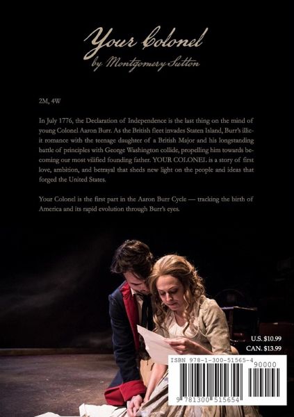In July 1776, the Declaration of Independence is the last thing on the mind of young Colonel Aaron Burr. As the British fleet invades Staten Island, Burr's illicit romance with the teenage daughter of a British Major and his longstanding battle of principles with George Washington collide, propelling him towards becoming our most vilified founding father. Your Colonel is the first part in the Aaron Burr Cycle - tracking the birth of America and its rapid evolution through Burr's eyes.