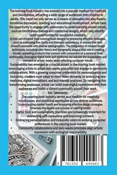 Unleash Your Creativity in Coloring Book Creation You remember the moment you first picked up a coloring book-how the colors flowed effortlessly from your mind onto the page, creating a world of your own. Now, imagine taking that joy and sharing it with others, inviting them into the colorful universe you've created. This book serves as your guide through the exhilarating process of designing, publishing, and marketing your own coloring books, illuminating the path for both novice and seasoned artists alike. With practical tips and inspirational insights, you'll learn how to analyze market trends, design captivating illustrations, and navigate the self-publishing landscape. This journey into coloring book creation not only cultivates artistic skills but also fosters a deeper connection with audiences, encouraging creativity and expression across all ages. ¿ Discover the intricacies of expanding your reach as an artist, empowering others through your work. ¿ Learn to adapt your unique artistic vision into engaging coloring book formats that resonate with diverse demographics. ¿ Gain insights into practical marketing strategies, ensuring your creations stand out in a competitive landscape. Are you ready to embark on a colorful adventure that transforms your artistic dreams into a reality and inspires others to unleash their creativity?
