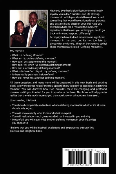 Have you ever had a significant moment simply slips by you in life? Priceless and life altering moments in which you should have done or said something that would have aligned your purpose and destiny in any phase of your life? Have you ever had what I call a ""missed the moment"" experience, that leaves you wishing you could go back in time and respond differently? Perhaps you have indeed missed some significant moments in the past, but it's not too late to prepare for the future. That can be changed today!