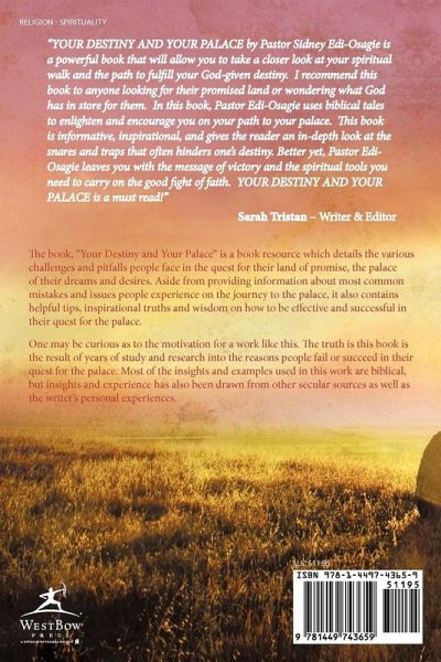 The book, "Your Destiny and Your Palace" is a book resource which details the various challenges and pitfalls people face in the quest for their land of promise, the palace of their dreams and desires. Aside from providing information about most common mistakes and issues people experience on the journey to the palace, it also contains helpful tips, inspirational truths and wisdom on how to be effective and successful in their quest for the palace. One may be curious as to the motivation for a work like this. The truth is this book is the result of years of study and research into the reasons people fail or succeed in their quest for the palace. Most of the insights and examples used in this work are biblical, but insights and experience has also been drawn from other secular sources as well as the writer's personal experiences.