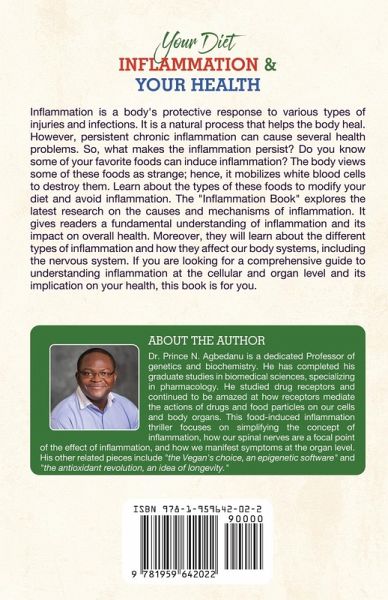 Inflammation is a body's protective response to various types of injuries and infections. It is a natural process that helps the body heal. However, persistent chronic inflammation can cause several health problems. So, what makes the inflammation persist? Do you know some of your favorite foods can induce inflammation? The body views some of these foods as strange; hence, it mobilizes white blood cells to destroy them. Learn about the types of these foods to modify your diet and avoid inflammation. The "Inflammation Book" explores the latest research on the causes and mechanisms of inflammation. It gives readers a fundamental understanding of inflammation and its impact on overall health. Moreover, they will learn about the different types of inflammation and how they affect our body systems, including the nervous system. If you are looking for a comprehensive guide to understanding inflammation at the cellular and organ level and its implication on your health, this book is for you.