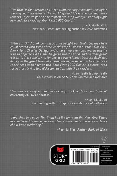 "If I could give an aspiring writer one piece of advice, it would be to read this book." - Hugh Howey, New York Times best selling author of Wool Imagine if you had a direct connection with thousands of readers who loved reading your books. And imagine if those readers eagerly awaited the launch of your next book. How would that direct relationship with your readers change your writing career? How would you feel knowing that every time you started a new book project, you already had people excited to buy it and ready to recommend it to others? In Your First 1000 Copies, seasoned book marketing expert Tim Grahl walks you through how successful authors are using the online marketing tools to build their platform, connect with readers and sell more books. Tim has worked with over 100 different authors from top best sellers such as Hugh Howey, Daniel Pink, Barbara Corcoran Charles Duhigg, Chip and Dan Heath, Ramit Sethi and Pamela Slim to authors just get started on their first writing project. He has worked with authors across all fiction and non-fiction genres. Along with his client work, he has studied many other successful authors to learn what works and what doesn't. The result is Your First 1000 Copies where he walks you through the Connection System, a plan that every author can immediately start using. The plan looks like this:Permission - How to open up communication with your readers where you can reliably engage them and invite them to be involved. Content - How to use content to engage with current readers and connect with new ones. Outreach - How to ethically and politely introduce yourself to new readers. Sell - How all of these steps can naturally lead to book sales without being pushy or annoying This is a system that any author can immediately put in place to start building their platform. Whether you're a seasoned author looking to step into the new publishing landscape, or you're a brand new author, Your First 1000 Copies will give you the tools to connect with readers and sell more books.