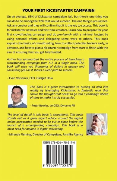 63% of Kickstarter campaigns fail. Do this one thing, and you'll be among the 37% who succeed. The one thing is pre-launch. Ask any crowdfunding creator, and they will confirm that it is the key to success. You will learn how to prepare for your first crowdfunding campaign and do pre-launch with a minimal budget by using personal efforts and delegating some work to others. This book is for Kickstarter newbies and first-time creators. It will teach and show you how to collect potential backers early, in advance, and how to plan a Kickstarter campaign from start to finish with the aim of ensuring that you get fully funded. You will understand the basics of crowdfunding, the main difference between the two most popular reward-based crowdfunding platforms: Kickstarter and Indiegogo, how to turn your idea, passion or skill into a product and how to evaluate if there's a market demand for it. The core part of this book is about preparation for the crowdfunding campaign: How to set crowdfunding goals and why it is important to set a low goal How to analyze similar campaigns How to define your target audience How to gather your crowd using free methods How to create a landing page that turns visitors into subscribers What are the best tools to build landing pages How to integrate your landing page with your mailing list How to "warm-up" leads with an automated email sequence How to engage your audience How to run Facebook Ads to collect leads How to use "smoke testing" method to see if someone buys your product What is a pre-launch funnel and what stages it has Conversion rates that you can expect How to do media and influencer outreach How to submit your video to viral video publishers You will also learn and be exposed to best practices when it comes to selecting attractive project images, how to create a title that sells, how to build engaging project video and how to brainstorm ideas for your rewards. Finally, the book explains how to launch and manage a Kickstarter campaign, when it's live: Why project launch timing is important The steps you need to do during the launch day Prepare to refuse offers Communication with backers (project updates and direct messages) Stretch goals Get traffic from Kickstarter ("Projects we love," trending, popularity rankings) Last days of your project Wrap-up and action plan