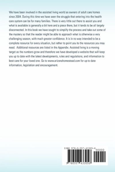 In our experience as assisted living home owners we have seen the struggle that entering into the health care system can be for many families. Ver little exists to assist you adn what is available is generally in bits and pieces and tends to be largely disconnected. In this book we have sought to simplify the process and take out some of the mystery so that the reader might be able to approach what is otherwise a challenging season with much greater confidence. It is in no way intended to be a complete resource for every situation, but rather to point you to the resources you may need. This book is a must have for anyone pursuing long term care for a loved one.