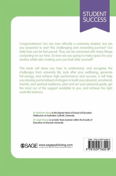 This book will show you how to understand and recognise the stressors from university life, look after your wellbeing, generate full energy, and achieve high performance and success. It will help you develop personalised strategies to build your physical, emotional, mental, and spiritual resilience, helping you plan and set personal goals, get the most out of the support available to you, and achieve the right work-life balance for you.