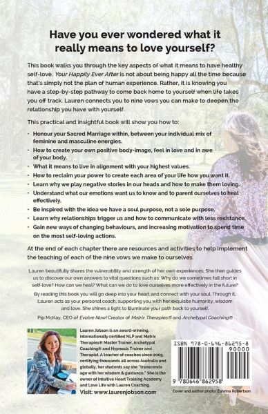 Have you ever wondered what it really means to love yourself? This book walks you through the key aspects of what it means to have healthy self-love. Your Happily Ever After is not about being happy all the time because that's simply not the plan of human experience. Rather, it is knowing you have a step-by-step pathway to come back home to yourself when life takes you off track. Lauren connects you to nine vows you can make to deepen the relationship you have with yourself. This practical and insightful book will show you how to: · Honour your Sacred Marriage within, between your individual mix of feminine and masculine energies. · How to create your own positive body-image, to feel in love and in awe of your body. · What it means to live in alignment with your highest values. · How to reclaim your power to create each area of your life how you want it. · Learn why we play negative stories in our heads and how to make them loving. · Understand what our emotions want us to know and to parent ourselves to heal effectively. · Be inspired with the idea we have a soul purpose, not a sole purpose. · Learn why relationships trigger us and how to communicate with less resistance. · Gain new ways of changing behaviours and increasing motivation to spend time on the most self-loving actions. At the end of each chapter there are resources and activities to help implement the teaching of each of the nine vows we make to ourselves.