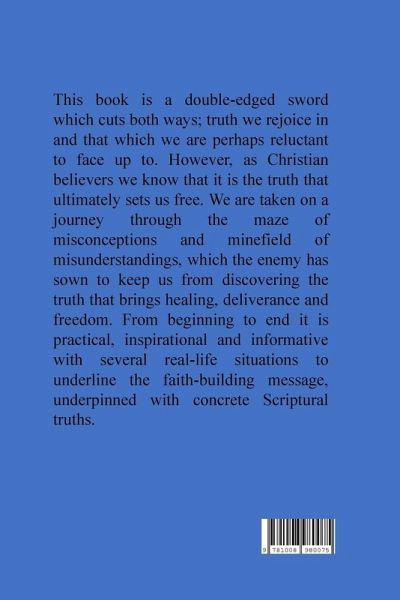 This book is a double-edged sword which cuts both ways; truth we rejoice in and that which we are perhaps reluctant to face up to. However, as Christian believers we know that it is the truth that ultimately sets us free. We are taken on a journey through the maze of misconceptions and minefield of misunderstandings, which the enemy has sown to keep us from discovering the truth that brings healing, deliverance and freedom. From beginning to end it is practical, inspirational and informative with several real-life situations to underline the faith-building message, underpinned with concrete Scriptural truths.