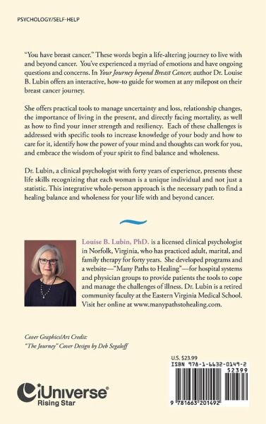 "You have breast cancer." These words begin a life-altering journey to live with and beyond cancer. You've experienced a myriad of emotions and have ongoing questions and concerns. In Your Journey beyond Breast Cancer, author Dr. Louise B. Lubin offers an interactive, how-to guide for women at any milepost on their breast cancer journey. She offers practical tools to manage uncertainty and loss, relationship changes, the importance of living in the present, and directly facing mortality, as well as how to find your inner strength and resiliency. Each of these challenges is addressed with specific tools to increase knowledge of your body and how to care for it, identify how the power of your mind and thoughts can work for you, and embrace the wisdom of your spirit to find balance and wholeness. Dr. Lubin, a clinical psychologist with forty years of experience, presents these life skills recognizing that each woman is a unique individual and not just a statistic. This integrative whole-person approach is the necessary path to find a healing balance and wholeness for your life with and beyond cancer.