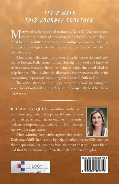 LET'S WALK THIS JOURNEY TOGETHER. ¿¿Motivated by her personal testimony, Keila M. Vazquez shares about her history of struggling with depression, which entered her life in different ways and on multiple occasions, including an incredibly tough time after Keila's mother lost her own battle with depression. After many failed attempts to overcome her depression and feeling so broken, Keila turned to exercise, the only tool she knew to relieve stress. Exercise alone not being enough, she asked God to help her heal. That is when she discovered the greatest medicine for overcoming depression: combining exercise with faith in God. The author shares her healing journey in this book, including the seven tools God walked her through to completely heal her from depression.