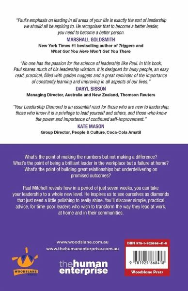 What's the point of making the numbers but not making a difference? What's the point of being a brilliant leader in the workplace but a failure at home? What's the point of building great relationships but underdelivering on promised outcomes? Paul Mitchell reveals how in a period of just seven weeks, you can take your leadership to a whole new level. He inspires us to see ourselves as diamonds that just need a little polishing to really shine. You'll discover simple, practical advice, for time-poor leaders who wish to transform the way they lead at work, at home and in their communities.