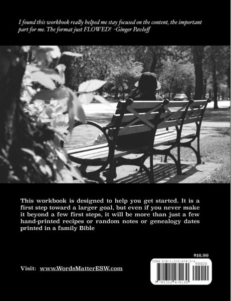 When my grandmother died and I was asked to give her eulogy, I had, in my possession, one of her Bibles. In the margins of that Bible, she had written several things: words of wisdom, take-away points from some sermon or another, personal exclamations. In addition to that Bible, I also have several recipe cards, written in her sometimes-unsure script. These relics are precious; they are more valuable than a priceless antique or an original Monet. I am happy to have them. What I don't have, are her stories-those stories she would tell after dinner, or while she was stringing beans, or sewing-those stories that would pass on to me the beliefs, values, and experiences that had shaped her life. I cherish the few pieces of her story that remain, and I long for more. Ultimately, whether the writing you do in response to this Legacy of Words Workbook is done for your own benefit, or you plan to pass these words on to someone else, what you are committing to do is leave "just a little more" of yourself behind.