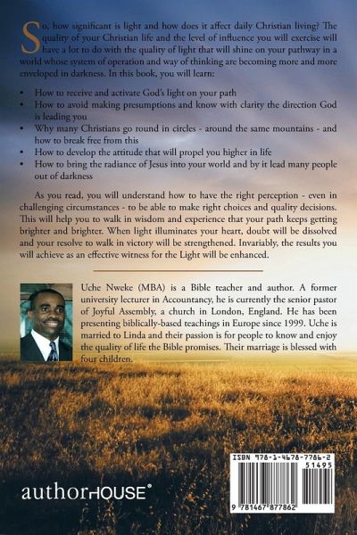 So, how significant is light and how does it affect daily Christian living? The quality of your Christian life and the level of influence you will exercise will have a lot to do with the quality of light that will shine on your pathway in a world whose system of operation and way of thinking are becoming more and more enveloped in darkness. In this book, you will learn: ¿ How to receive and activate God's light on your path ¿ How to avoid making presumptions and know with clarity the direction God is leading you ¿ Why many Christians go round in circles - around the same mountains - and how to break free from this ¿ How to develop the attitude that will propel you higher in life ¿ How to bring the radiance of Jesus into your world and by it lead many people out of darkness As you read, you will understand how to have the right perception - even in challenging circumstances - to be able to make right choices and quality decisions. This will help you to walk in wisdom and experience that your path keeps getting brighter and brighter. When light illuminates your heart, doubt will be dissolved and your resolve to walk in victory will be strengthened. Invariably, the results you will achieve as an effective witness for the Light will be enhanced.