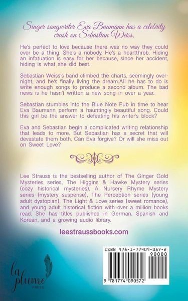 Singer songwriter Eva Baumann has a celebrity crush on Sebastian Weiss. He's perfect to love because there was no way they could ever be a thing. She's a nobody. He's a heartthrob. Hiding an infatuation is easy for her because, since her accident, hiding is what she did best. Sebastian Weiss's band climbed the charts, seemingly overnight, and he's finally living the dream.All he has to do is write enough songs to produce a second album. The bad news is he hasn't written a new song in over a year. Sebastian stumbles into the Blue Note Pub in time to hear Eva Baumann perform a hauntingly beautiful song. Could this girl be the answer to defeating his writer's block? Eva and Sebastian begin a complicated writing relationship that leads to more. But Sebastian has a secret that will devastate them both. Can Eva forgive? Or will she miss out on Sweet Love? * * * **This second edition has been edited to fit into the sweet romance genre. Previously published as Flesh & Bone as Hope Franke Strauss.