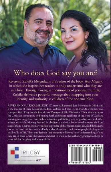 Who does God say you are? Reverend Zuleika Melendez is the author of the book Your Majesty, in which she inspires her readers to truly understand who they are in Christ. Through God-given testimonies of personal triumph, Zuleika delivers a powerful message about stepping into your identity and authority as children of the one true King.