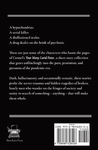 A hypochondriac. A serial killer. A disillusioned zealot. A drug dealer on the brink of psychosis. These are just some of the characters who haunt the pages of Connel's Your Many Lurid Fates, a short story collection that gazes unflinchingly into the pain, pessimism, and paranoia of the pandemic era. Dark, hallucinatory, and occasionally ecstatic, these stories probe the secret traumas and hidden tragedies of broken, lonely men who wander on the fringes of society and sanity in search of something - anything - that will make them whole.