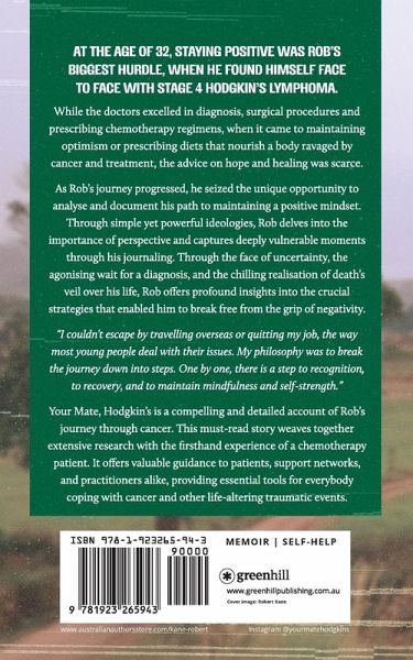 Rob found himself in the chemotherapy ward of an old handsome hospital outhouse and struck up a conversation with a wonderful man by the name of John. "It's all about staying positive", he stated after I asked him how he had mentally dealt with over two years of treatment. This drove Rob to learn and understand 'the how' of positivity when faced with such a desperate reality. The symptoms, the surgeries, the waiting, the vastness of his new reality - it's all captured in this desperate tale that so many of us experience. Cancer and chemotherapy bring with it depression and anxiety, bundled with hopelessness and a sense of the fickleness of life. Rob chose to change his perspective; not to dwell on the negative and to live in the positive. Rob discovers and records all the coping mechanisms he feels can help patients, support networks and medical practitioners alike to find positivity and cope with cancer. This easy to navigate book gives the reader an understanding of the cancer journey, a guide through each coping mechanism to find positivity, and an explanation of chemotherapy nutrition to nourish a body ravaged by cancer and chemicals, all of which the medical industry didn't provide him throughout his journey. Rob has weaved his extensive research of medicine and science into a must-read story of a cancer and chemotherapy patient's experience. He explains the importance of fasting and chemotherapy nutrition including what not to consume.