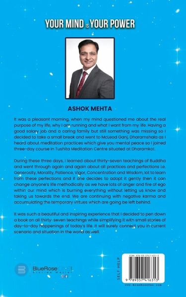 This book is all about each one of us in today's fast paced world. This will certainly help those who are disturbed with emotions and their mind gets distracted frequently and unable to comprehend what to do and where to proceed when they see all roads are blocked and no one is there to guide them. They must read this book carefully and implement Buddha's teachings as much as in their lives. It took me few months to understand little about the real meaning of Buddha's teachings as I am trying to implement all perfections and practices such as practice of Meditation and Dharma in my life. Positive karma is necessary to get freedom from cyclic existence and from suffering due to your past negative karma. One who reads it must understand the meaning of each word carefully as it will ignite your all-negative thoughts and take you on the path of positivity.