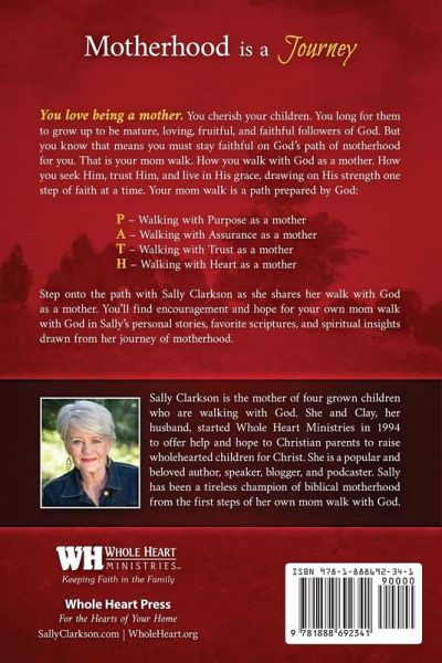 Motherhood is a journey. You love being a mother. You cherish your children. You long for them to grow up to be mature, loving, fruitful, and faithful followers of God. But you know that means you're called to be that kind of mom. It means you must stay faithful on God's path of motherhood for you. That is your mom walk. It is how you walk with God as a mother. It is how you seek Him, trust Him, and live in His grace. It is how you draw on His strength one step of faith at a time. Your mom walk is a path prepared by God: P - Walking with Purpose as a mother A - Walking with Assurance as a mother T - Walking with Trust as a mother H - Walking with Heart as a mother Join Sally Clarkson in Your Mom Walk with God as she shares her walk with God as a mother. You'll find encouragement and hope for your own mom walk in Sally's personal stories, favorite scriptures, and spiritual insights drawn from her journey of motherhood. Your mom walk starts with a step of faithfulness, so step onto the path with Sally. ¿Sally Clarkson is the mother of four grown children who follow God. She and her husband Clay started Whole Heart Ministries in 1994 to help Christian parents raise wholehearted children for Christ. She is a popular author, speaker, blogger, and podcaster. Through Mom Heart Ministry she seeks to restore moms' hearts to God's heart for motherhood.